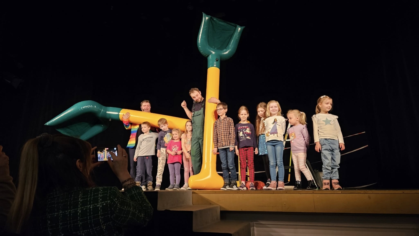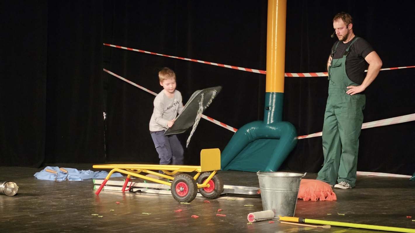Lina - trąbą słonia, malarski wałek na kijku - głową i szyją żyrafy, drabina i łopata samolotem - by tak było, wystarczy wyobraźnia, a tej nie brakowało aktorom i widzom niedzielnego teatru w MOK. Przedmioty w spektaklu Podaj Cegłę Teatru wielu Forma z Płocka zagrały w widowisku, a później po nim inspirowały młodych widzów do samodzielnego tworzenia scenicznego bohatera.