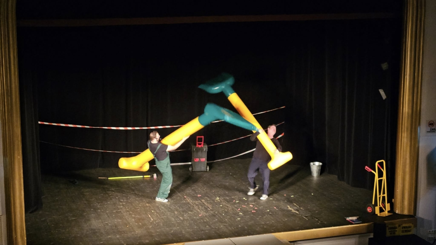 Co może stać się podczas remontu domu? Można przeżyć przygodę. Wystarczy wyobraźnia, a tej twórcom widowiska „Podaj cegłę” nie brakowało. Przedmioty wykorzystywane do remontu stawały się zwierzętami czy innymi przedmiotami.
